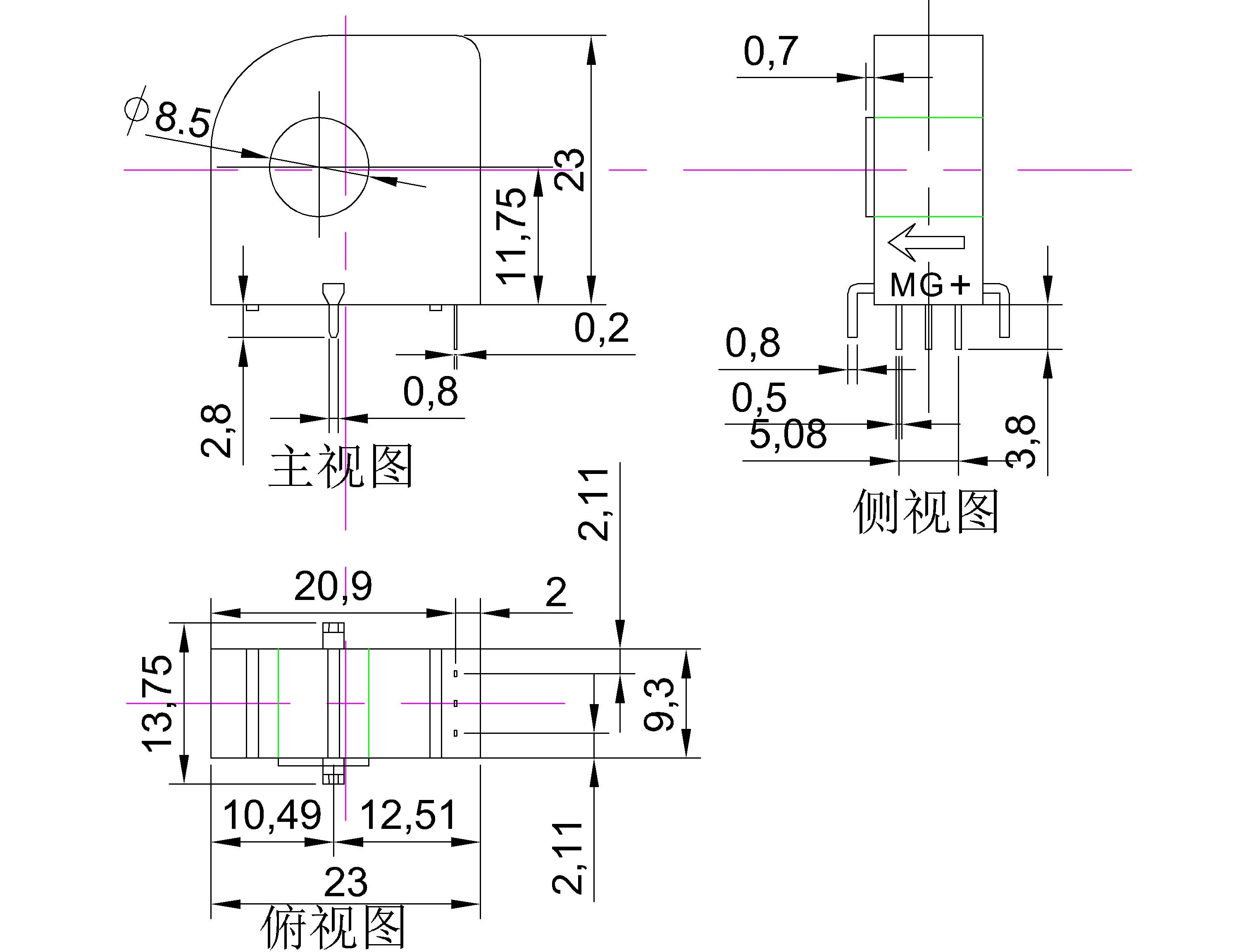 该传感器采用磁平衡霍尔电压检测原理工作。原边电流产生的磁通量与霍尔电压经过放大产生的副边电压,通过副边线圈所产生的磁通量相平衡,副边电压便能精确地反应原边电流。